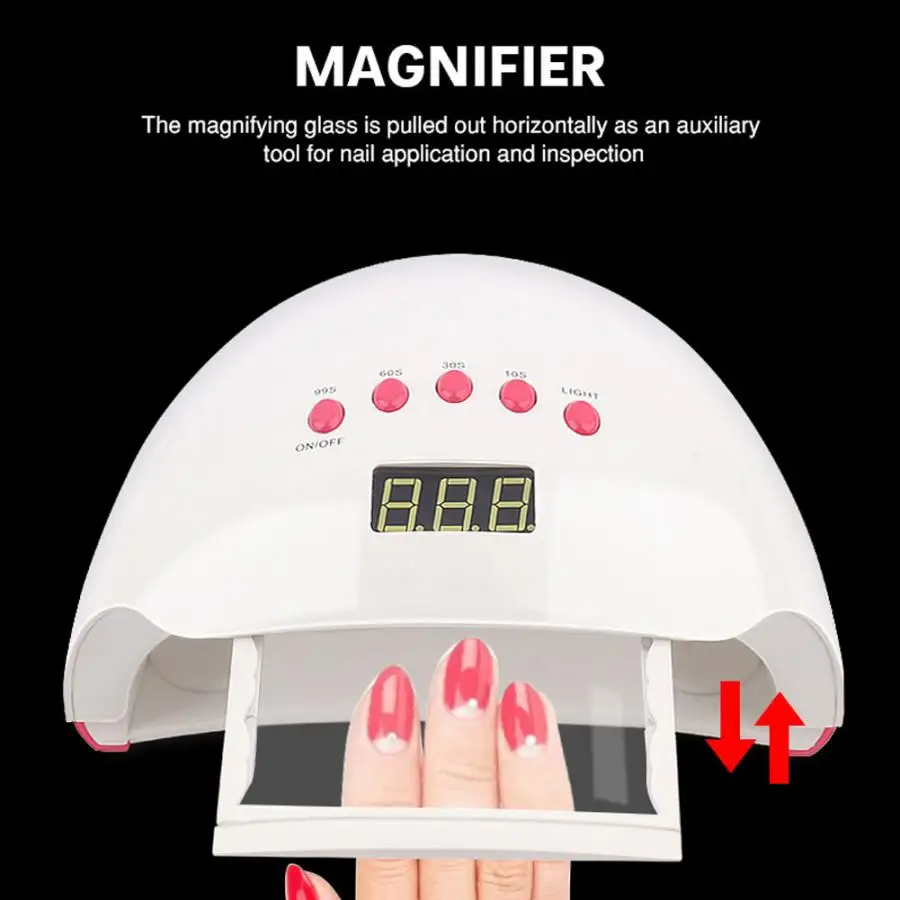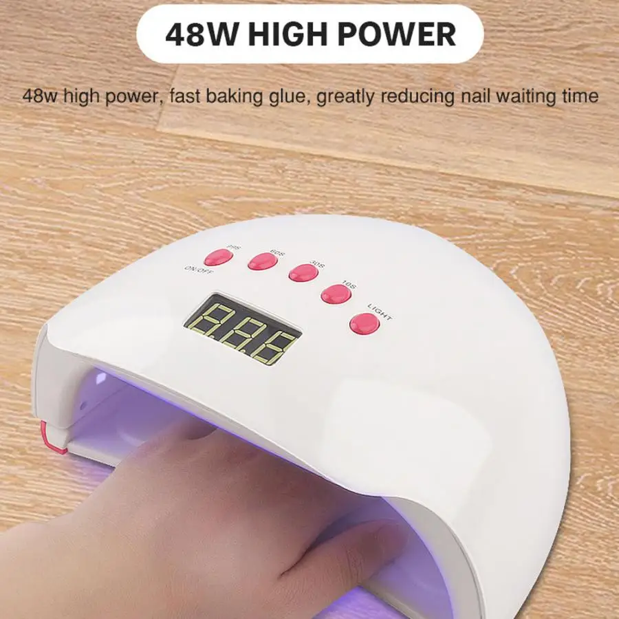 1. 48 Вт Высокая мощность, быстро и тщательно выпекающие гели, может высушить УФ-гель, лак для ногтей, Удлинительный гель и т. д.