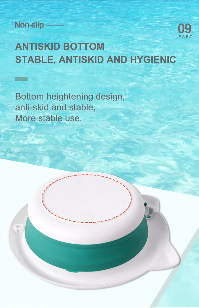 Описание: Материал: экологически чистый PP + TPE Особенности: складной и устойчивый к высоким температурам Цвет: синий, розовый, зеленый Размер: 32*32*3 см Упаковочный лист: 1 * Детский умывальник