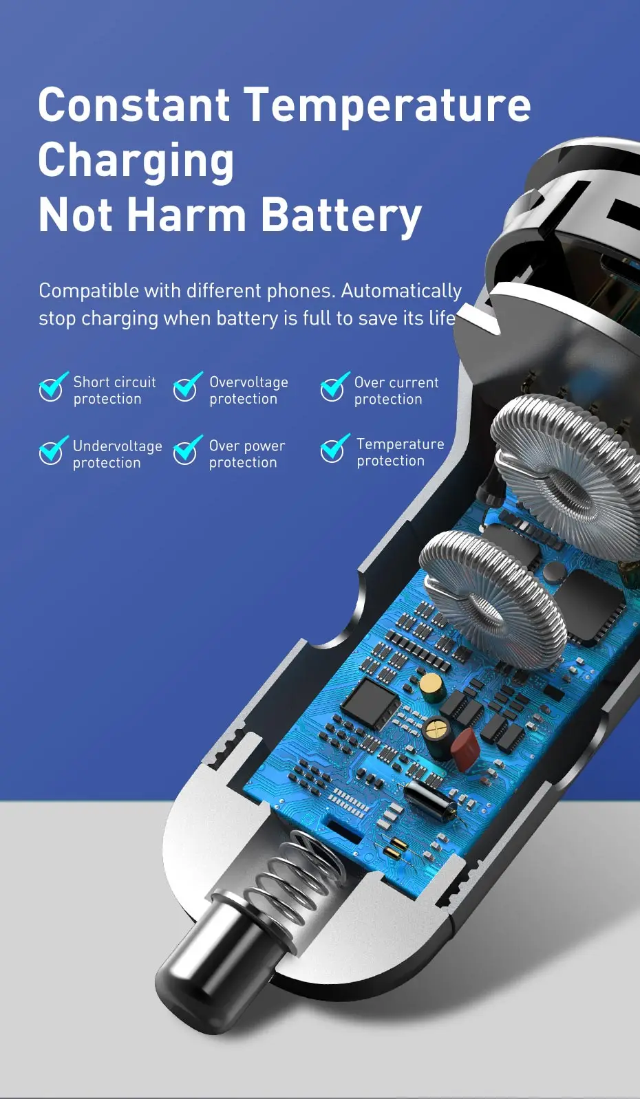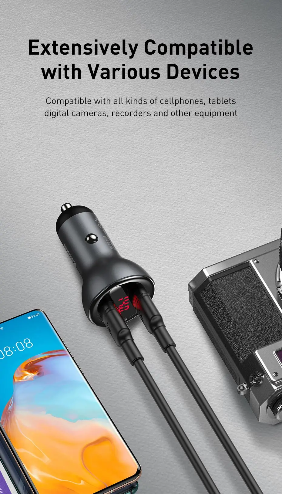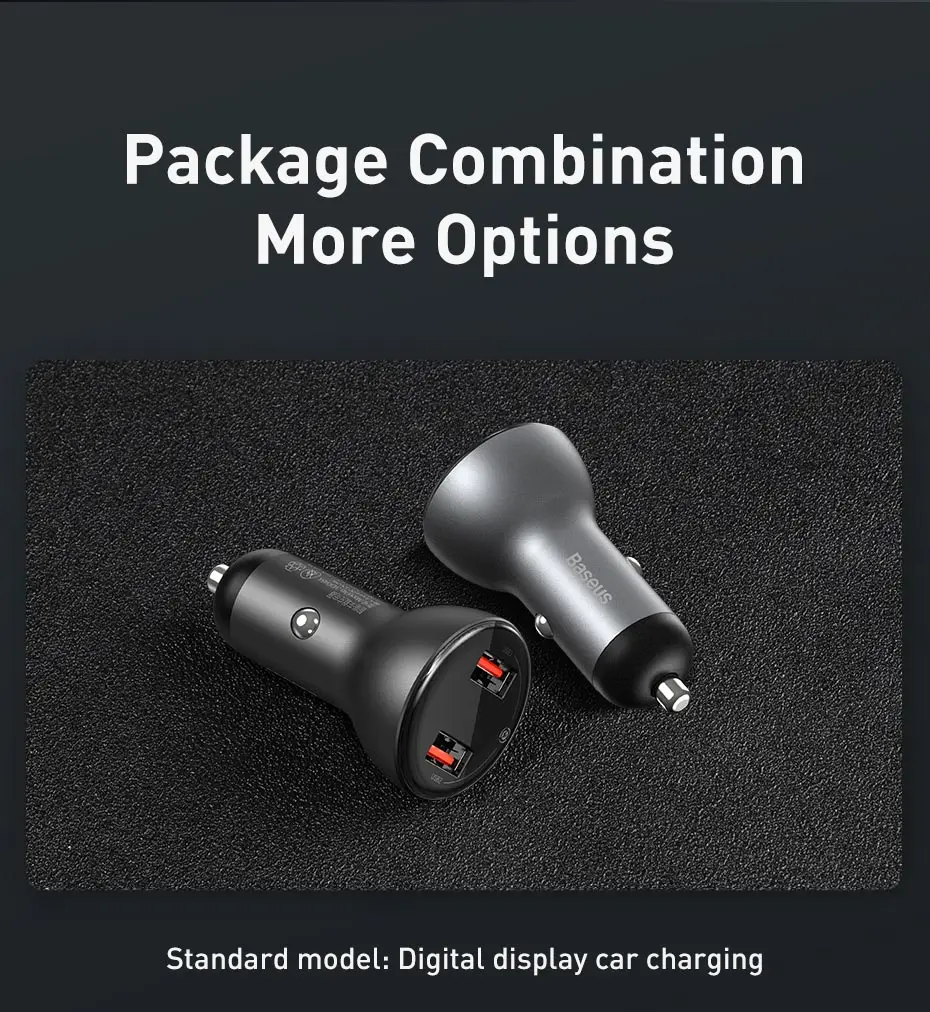 Название продукта: Baseus цифровой дисплей двойной SCP быстрое зарядное устройство автомобильное зарядное устройство 45 Вт двойное кольцо для Huawei кабель быстрой зарядки 1 м серый