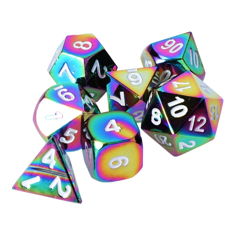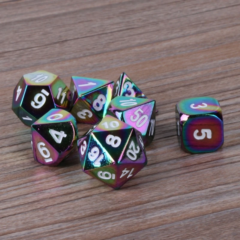 Каждый цвет поставляется с 7 различными игральными костями: 4, 6, 8, 10, 12, 20 сторонних игральных костей и процент (%) игральных костей.
