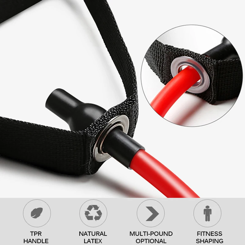 Диапазоны сопротивления имеют 5 уровней на 5 цветов, желтый 10 фунтов, Зеленый 15 фунтов, Красный 20 фунтов, синий 25 фунтов, черный 30 фунтов, вы можете выбрать его в соответствии с вашей любовью и условиями фитнеса.
