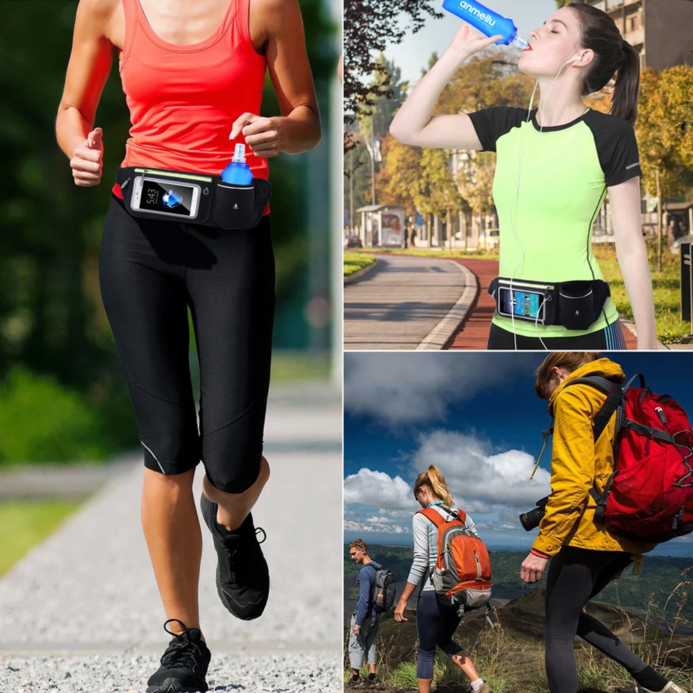 Подходит для 4,8-6,2 дюймов мобильные телефоны Поддержка разблокировки отпечатков пальцев: iphone. Samsung. Xiaomi. Huawei и т. Д. Два кармана. Дизайн сумки для бутылки с водой. Может вместить до 500 мл бутылки для воды, диаметр чайника не более 8 см. Водонепроницаемая Светоотражающая молния Дизайн отверстия для наушников.