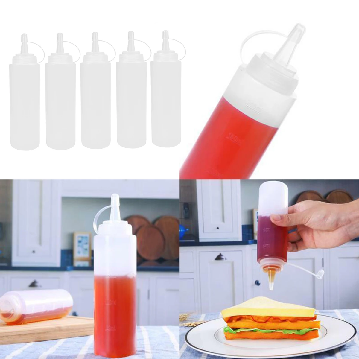Этот товар представляет собой бутылочку для выдавливания, которая может использоваться для хранения различных вязких материалов. Он изготовлен из экологически чистого пищевого пластика, мягкий и простой в экструзии. Кроме того, он обладает сильной коррозионной, кислотной и щелочной стойкостью. Это должно быть хорошим помощником на кухне.1 х Набор из 5 штук 200 мл 8 унций пластиковые выдавливающие Бутылочки для приправ с закручивающимися крышками верхние диспенсеры для кетчупа горчичные горячие соусы набор для барбекю с оливковым маслом