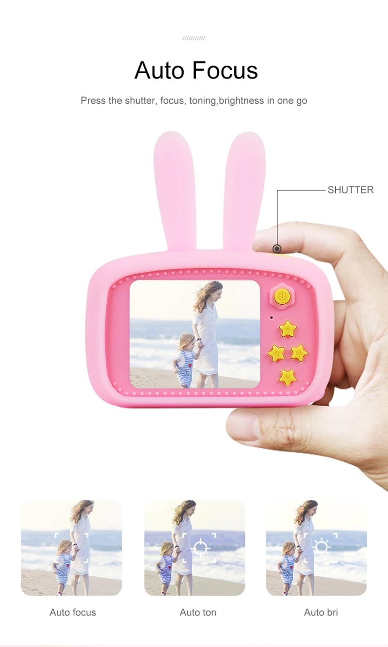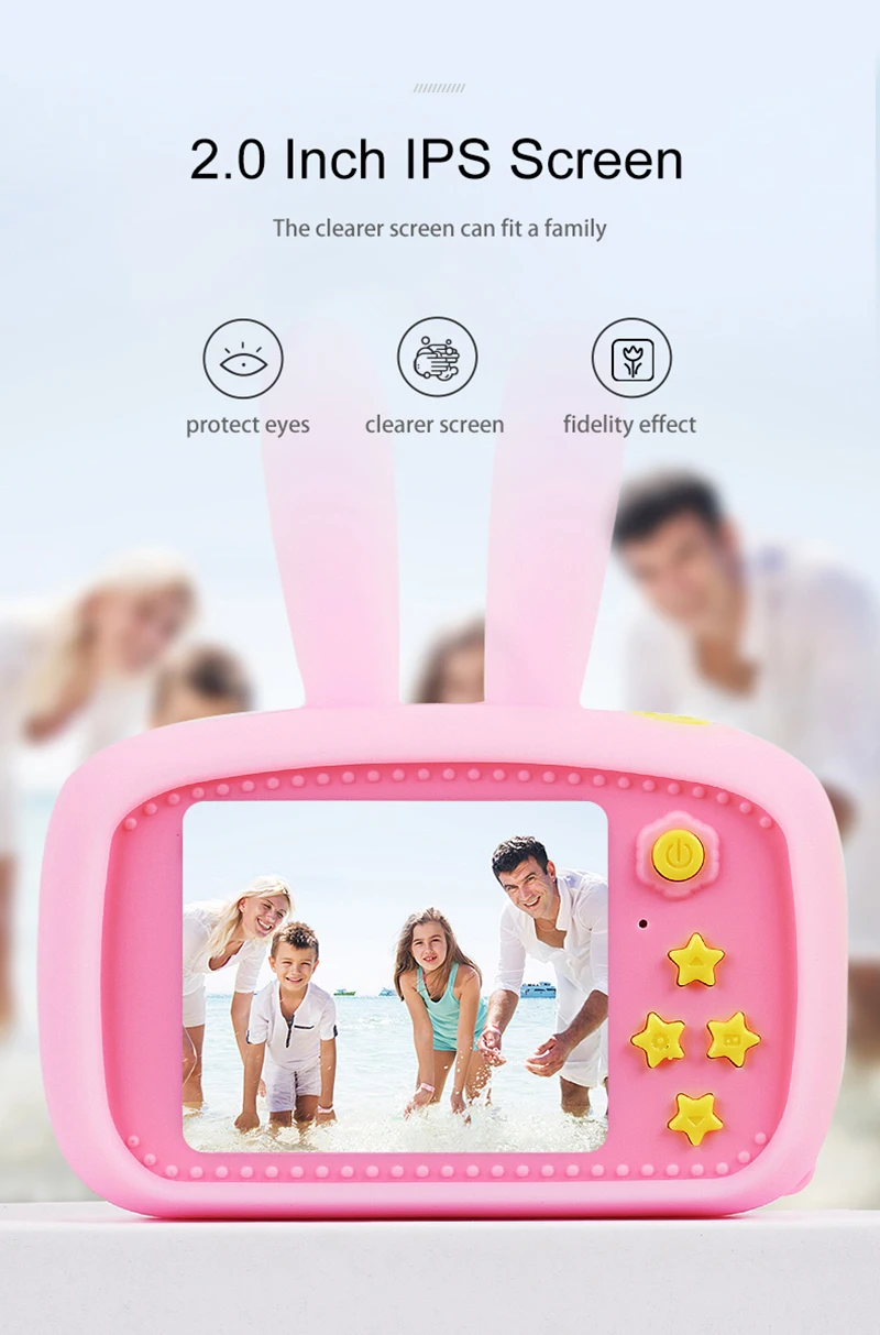 Экран 2,0 дюймов. Маленький, ослепительный дизайн Рука более удобная. Простой дизайн. Больше подходит для детских привычек. Долгий режим ожидания, полный электричества. 16 ГБ = 1000 + фото, 2 часа + видео