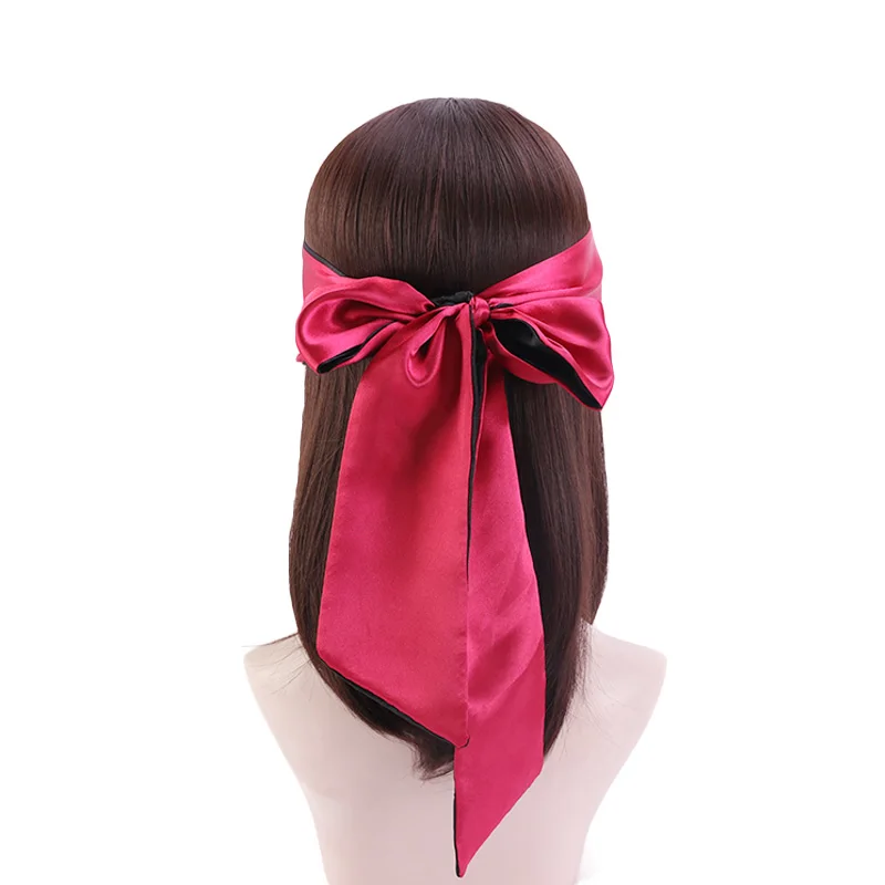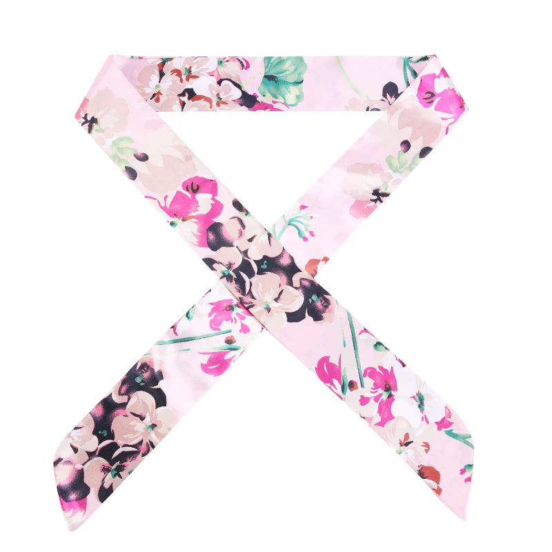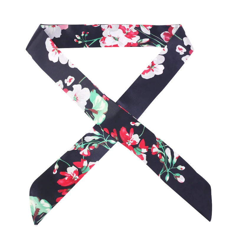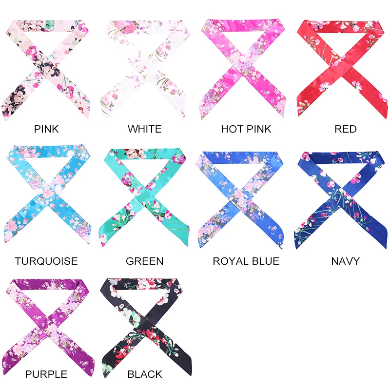 TD-223A Print Silky Scarf Headband Long Ribbon Ponytail Scarf Hair Tie