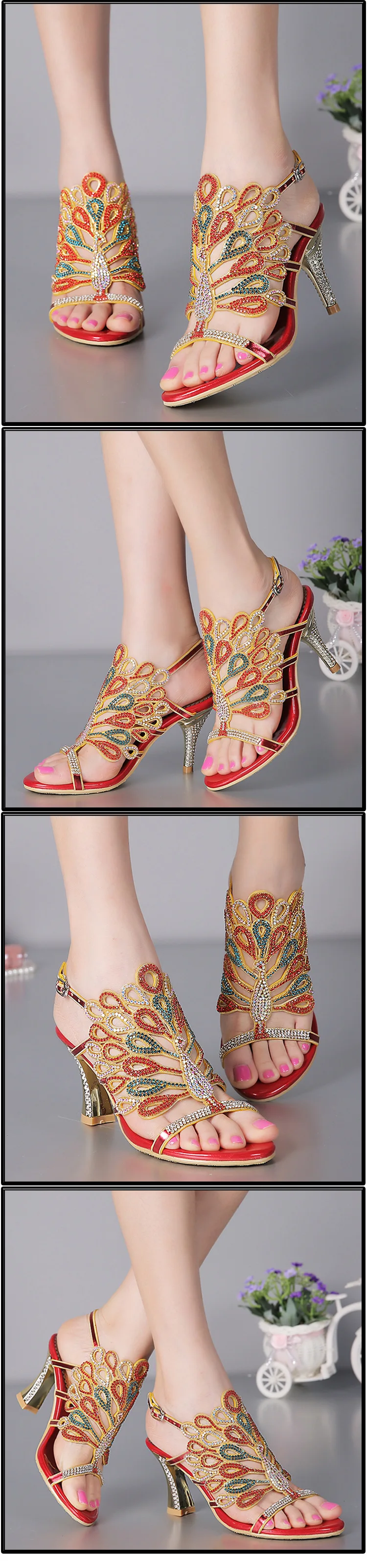 Большой Размеры Горячая 2021 сандалии-гладиаторы с отделкой бисером в богемном стиле; Женские летние Стразы с цветочным принтом женские шлепанцы на высоком каблуке сандалии женская обувь