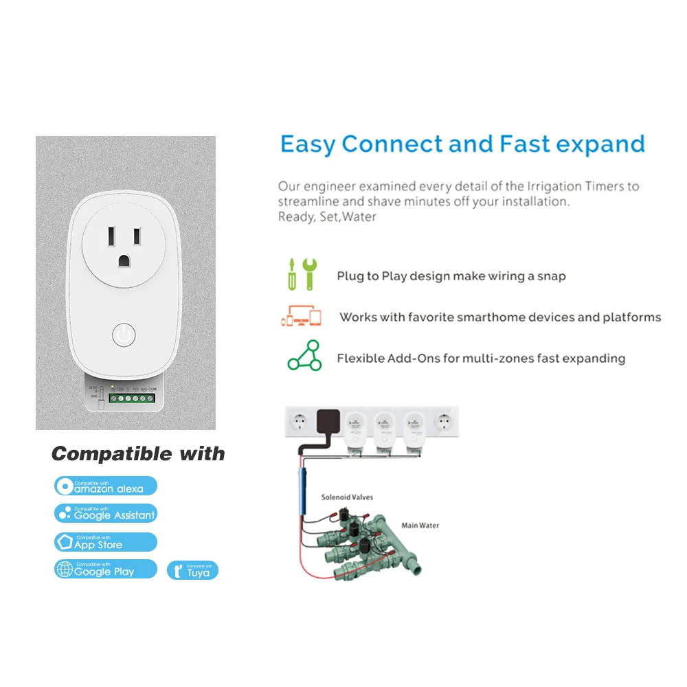 [Простое подключение и быстрое расширение]Наш инженер изучил каждую деталь оросительного таймера, чтобы обработать и побрить минуты от вашей установки.