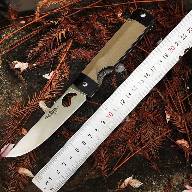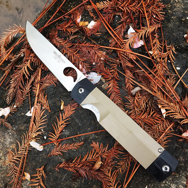 Бренд: brother Код товара: 1607 Лезвие: 440C Ручка: G10 Полная длина: 223 мм Длина лезвия: 99 мм Толщина: 3,2 мм Поверхность: плоская шлифовка. Сатин-отделка Уровень защиты: 58-60HRC Вес ножа: 125 г