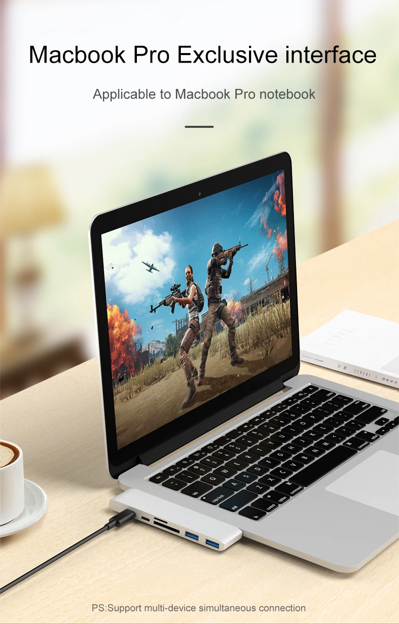 Product name: Dual Type-C HUB 6-in-1 HDMI Docking Station Material: Aluminum alloy Product color: silver gray Interface type: dual Type-C 3.1 high-speed interface Expansion port: USB3.0 * 2 + USB-C data + USB-C PD charging (compatible with Thunderbolt 3 standard) Transmission rate: TYPE-C to USB3.1 theoretical speed 10Gbps, backward compatible with USB3.0 / USB2.0 / USB1.1 Power output: voltage: 5V-20V current 3A-5A power: 15W-100W Product size: length 12.7Cm, width 3Cm, thickness 1Cm Product material: high-end aluminum-magnesium alloy material anti-scratch, no color change, better heat dissipation performance, long life Product packaging: exquisite carton + blister inner tray packaging size 16cm * 7.5cm * 1.6cm Packing size: 46 * 37 * 19cm one piece 100PCS Product weight: single product: 46g full set 67g Features Data transmission and charging of computer equipment, USB3.0HUB interface can be connected to USB, mouse, keyboard, mobile hard disk, game controller and other external devices Product Name: USB-C COMBO HUB 6IN1 Compatible; thunderbolt3 USB3.0 / 2.0 / 1.0 Support: SD / SDHC / SDXC / Micro SD System: Windows XP / 7/8/10 Mac OS9X / 10 Voltage: 5V 9V 14.5V 20.3V Interface: type-c male * 2, type-c female * 2 USB3.0 * 2, SD, Micro SD