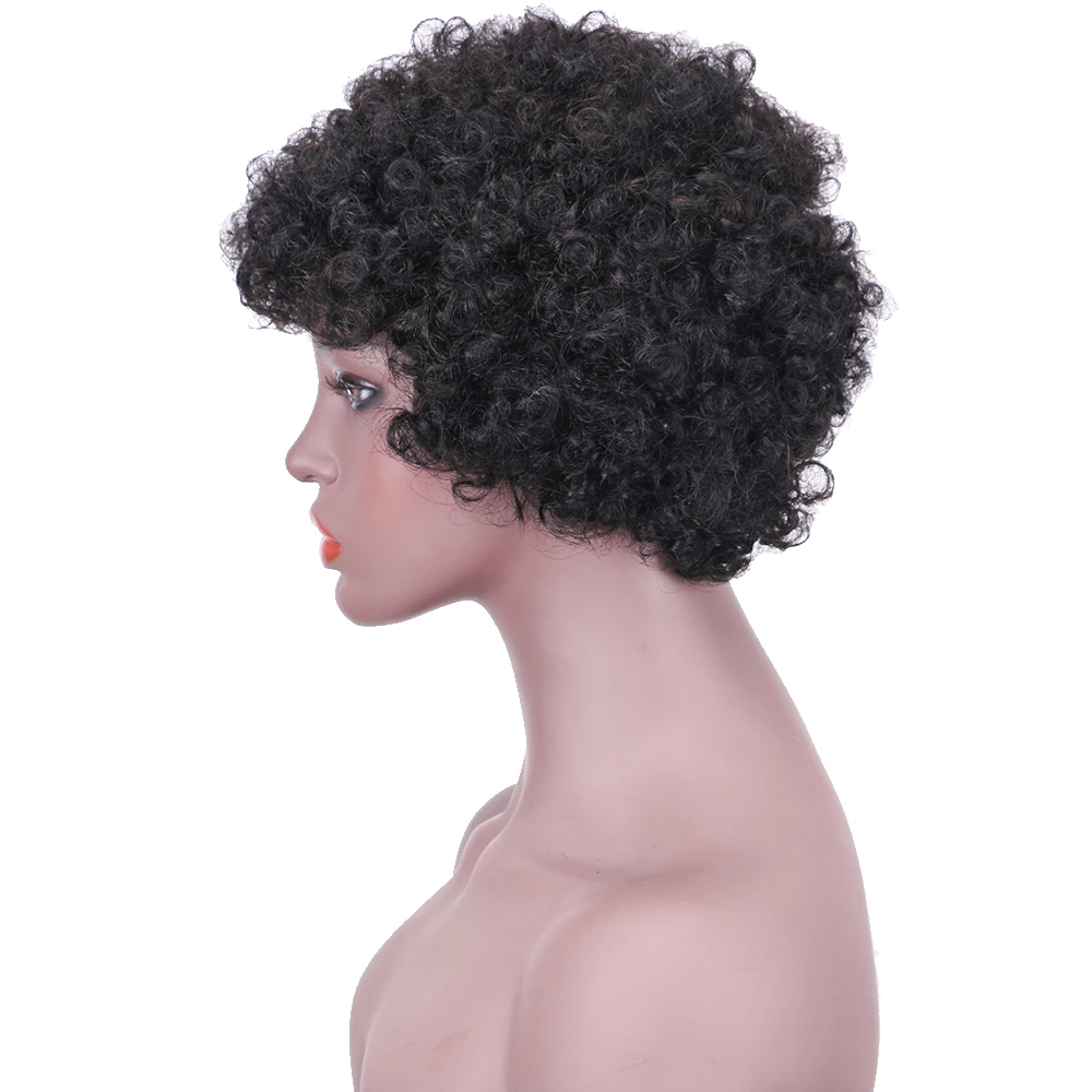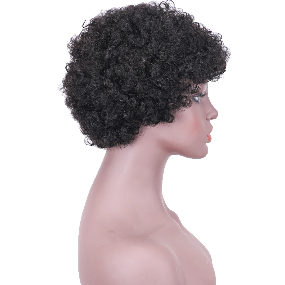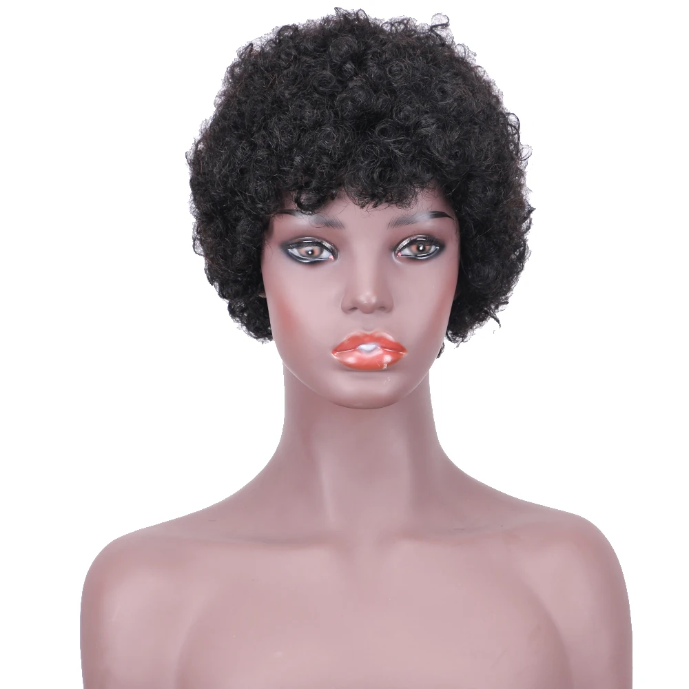 Парики из натуральных волос афро-женские короткие парики для черных женщин кудрявые 12 дюймов вечерние парики для костюмированной вечеринки с челкой