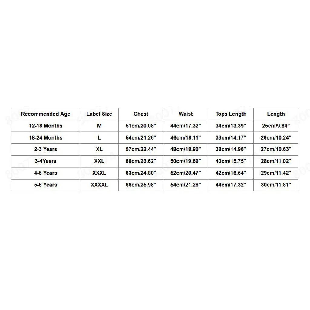 | Recommended Age | Label Size | Chest | Waist | Tops Length | Length |