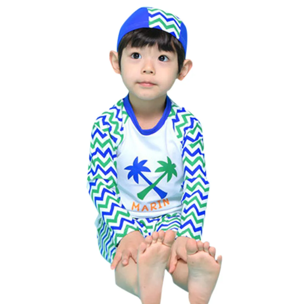 Kid Baby Girl Boy Long Sleeve Letter Beach Swimwear Cap Bathing Set Clothes