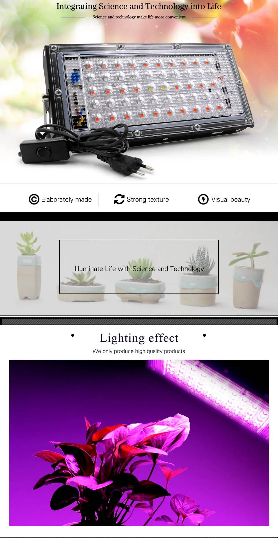 Lqsci 50 Вт Светодиодная лампа для выращивания растений AC 220 В, прожектор для растений, теплицы, Гидропонные растения, прожектор