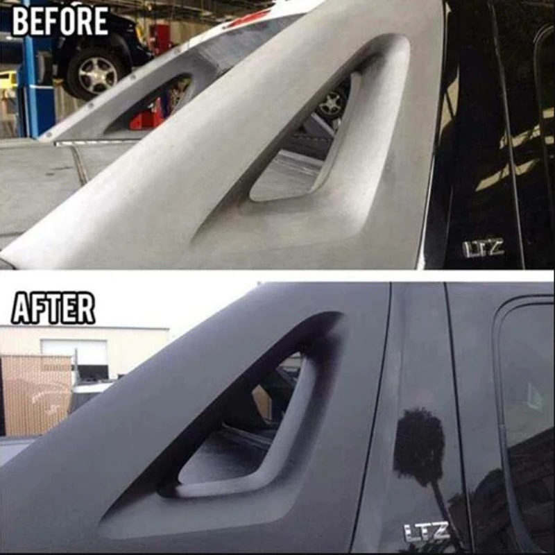 Раствор для восстановления Пластика прост в использовании. Просто протрите его губкой на нужном участке до достижения желаемого черного цвета поверхности вашего автомобиля.