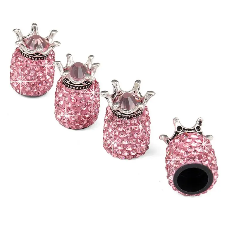 4 шт. Новое поступление розовые прозрачные алмазные короны для автомобильных шин, колпачки для клапанов, Кристальные велосипедные шины, колеса, защита от пыли