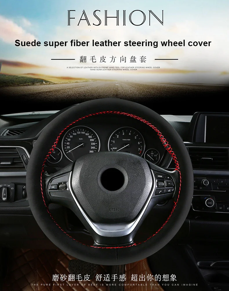 Ручная швейная накладка на руль, мягкая замша, дышащая, 38 см., чехол на руль автомобиля, оплетка, автомобильный Стайлинг, аксессуары для самостоятельной сборки, универсальный