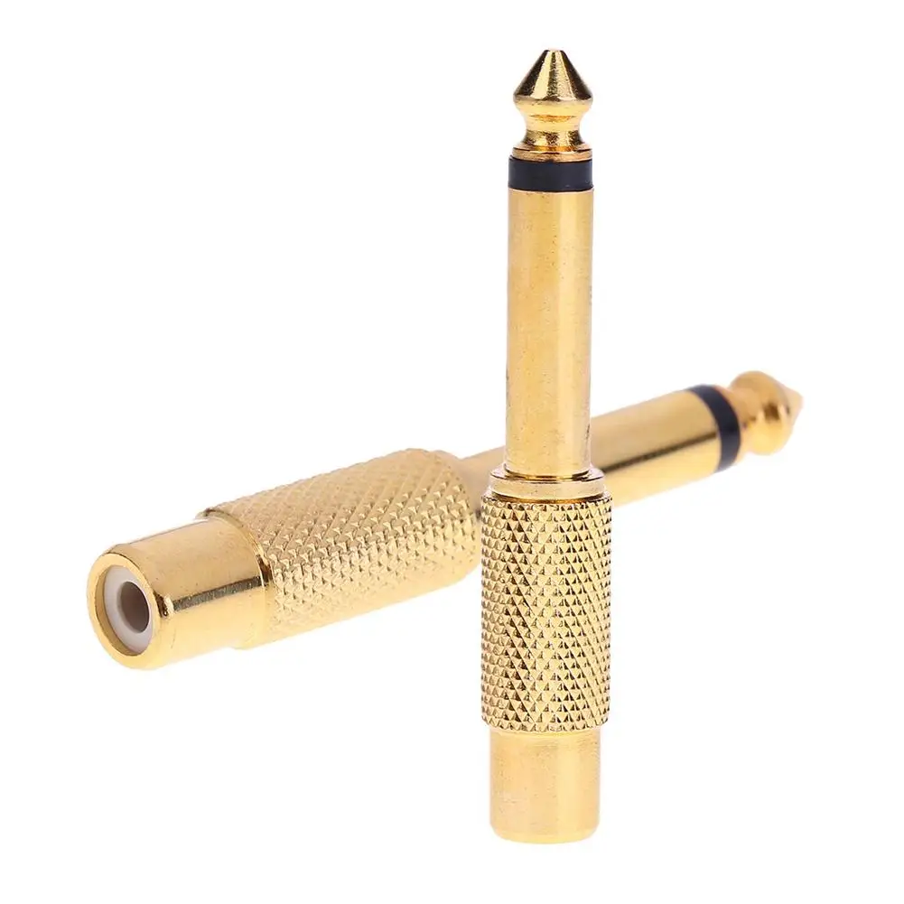 Особенности: Конвертер RCA аудио сигнала в 6,35 мм с разъемом «папа»; Низкая потеря сигнала, анти-магнитный; Позолота (6,35 мм) подойдет как для повседневной носки, так штекер RCA переходник с внутренней резьбой; Характеристики: Материал изделия: позолоченная Чистая медь Размер продукта: 58x10x10 мм/2,28x0,39x0,39 "(Д x Ш x В) Вес изделия: 7 г/шт. Цвет изделия: золотой Упаковка: 1 шт./пакет