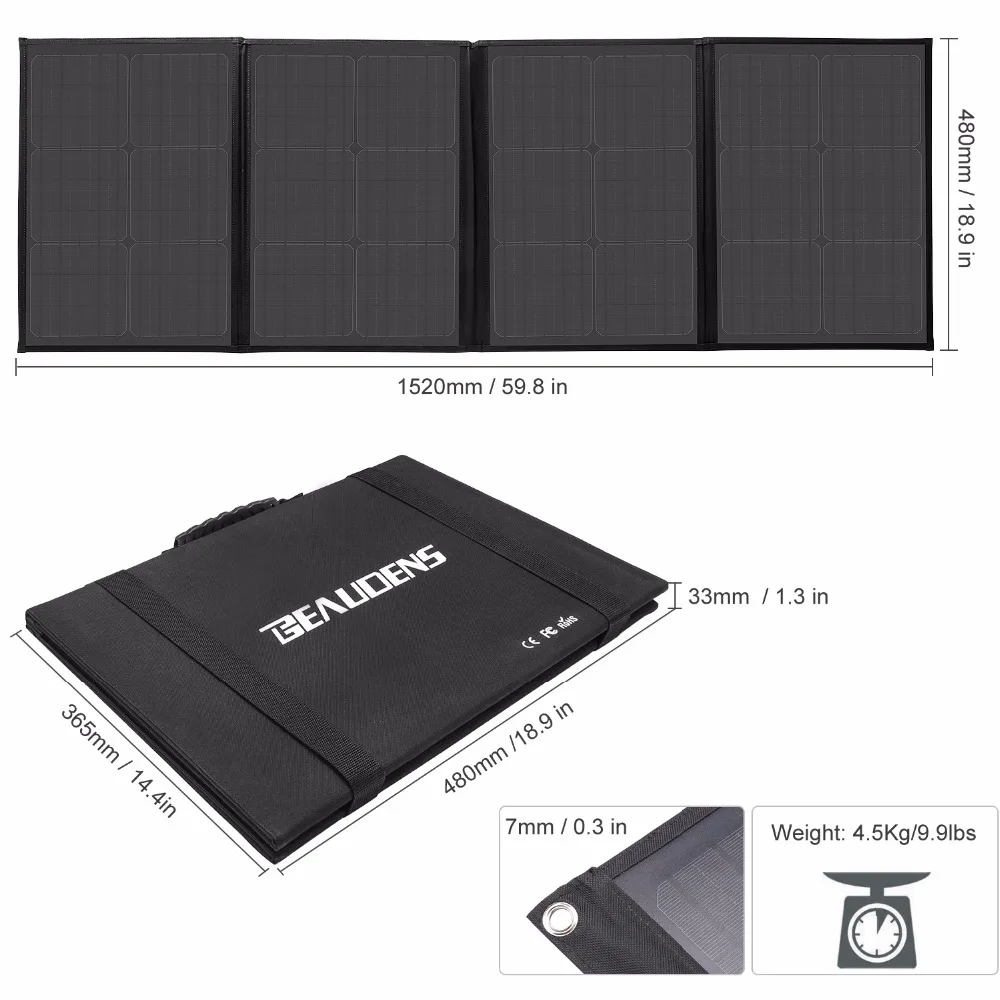Портативное солнечное зарядное устройство Beaudens, 100 Вт, Тип C, QC3.0, USB, DC, складное, для смартфонов, ноутбуков, планшетов, на открытом воздухе