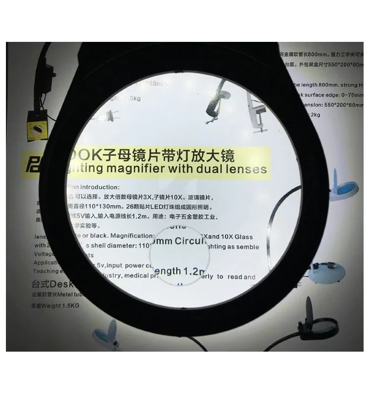 | PD-6S | Dual lenses Magnifier lamp with magnetic base | 3X and 10X, or 8x and 15x | main lens: 97mm sub lens: 20mm |