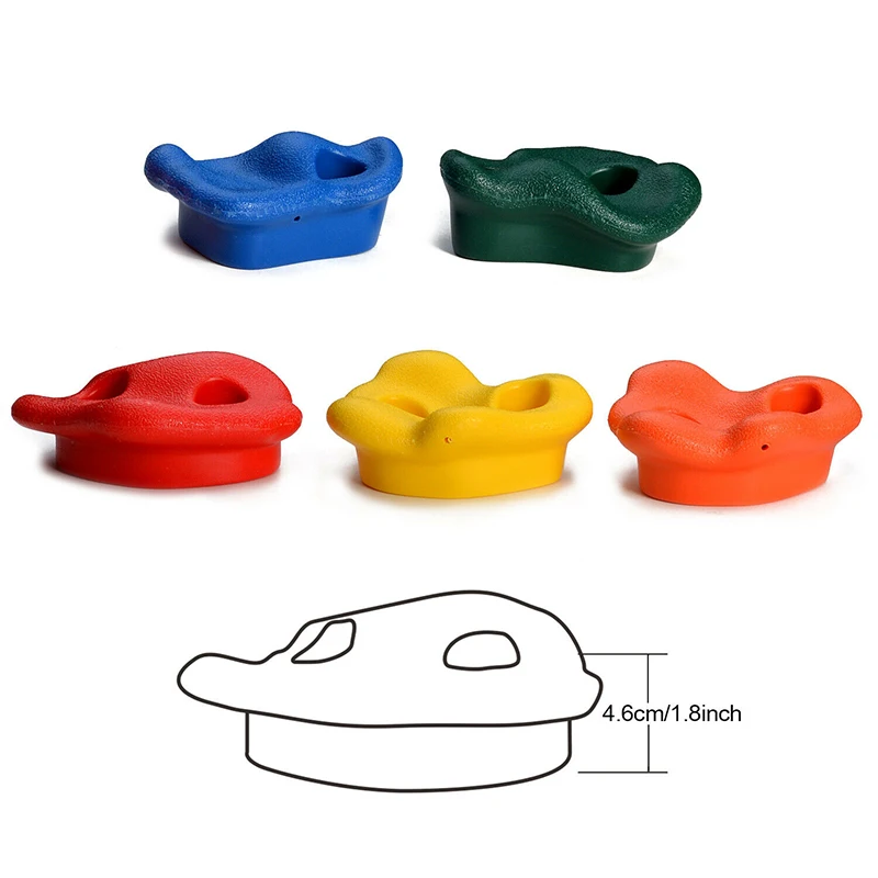 Изготовлен из сверхпрочного полиполимерного пластика, текстурированная поверхность легко захватывается Идеальная форма и размер для детей, легко держать. Подходит для использования в помещении или на открытом воздухе, станет отличным дополнением к домашней стене, качели, игровой набор, тренажерный зал джунглей, рок или оборудование для игровых площадок Простота установки: легко добавить на Открытый Игровой набор или в дверь дома стены, создать альпинистскую стену в минуту. Отлично подходит для упражнений и развития детей, повышает прочность детей, балансирует гибкость и выносливость, весело проводя время. |