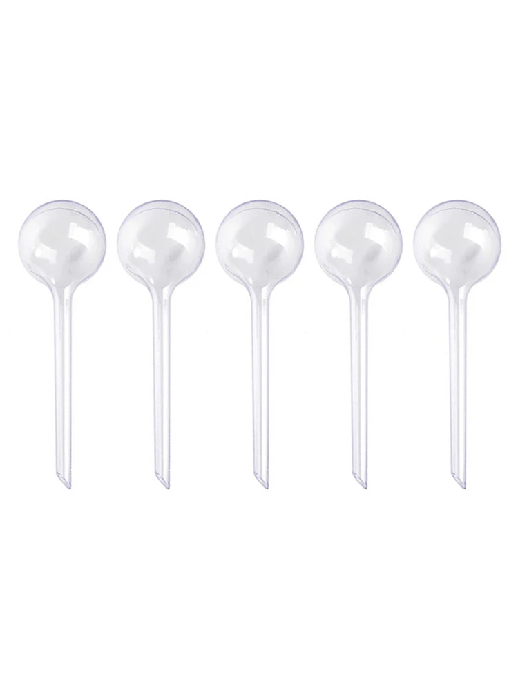 When soil is dry, air gets into the globe which in return releases some of the water.Product list:5 * Self Watering Water Feeder