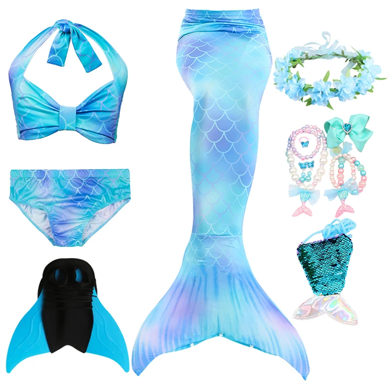 4PCS: 1 * mermaid tail dress + 1 * bra + 1 * shorts 5PCS: 1 * mermaid tail dress + 1 * bra + 1 * shorts + 1 * garland + 1 * Monofin 6PCS: 1 * mermaid tail dress + 1 * bra + 1 * shorts + 1 * garland + 1 * monofin + 1 * necklace + 1 * swim goggles 11PCS: 1 * mermaid tail dress + 1 * bra + 1 * shorts + 1 * garland + 1 * monofin + 1 * waist bag + 1 * hair clip + 1 * necklace + 1 * bracelet + 1 * ring + 1 pair of ear clips