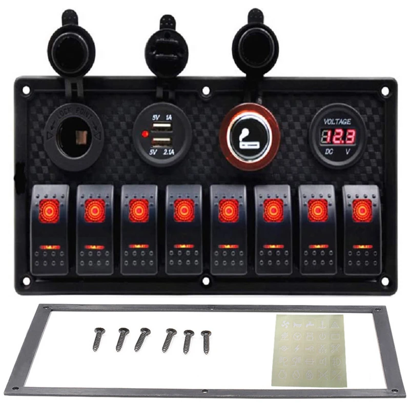 Широко применяется-12V/24V 8 панель переключателя лодки подходит для применения в автомобилях, лодках, грузовиках, яхтах, караванах. Ультра тонкая и гибкая лицевая пластина, она делает заднюю часть кабины более чистой и с меньшим количеством проводов.