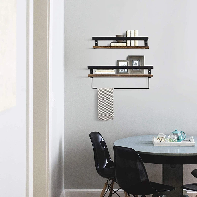 На кухне, плавающая полка может использоваться для размещения приправ бутылок, держатель для полотенец может использоваться для подвешивания полотенец или кухонных крючков, чтобы повесить кухонные принадлежности. В ванной комнате Положите туалетные принадлежности на полки для хранения, такие как шампунь, кондиционер, гель для душа и т. д., Повесьте полотенце ниже. Также идеально подходит для спальни, гостиной, офиса и т. д.