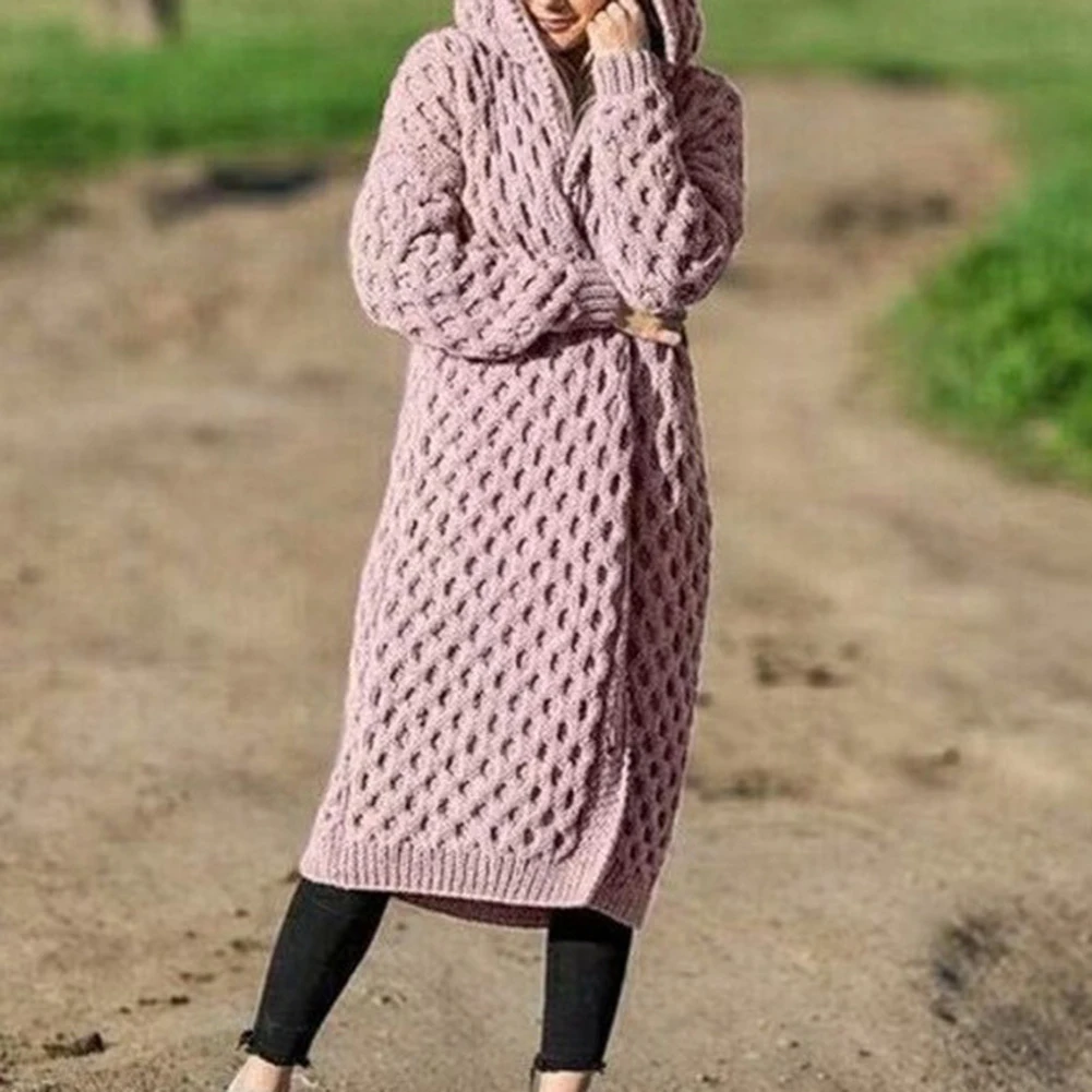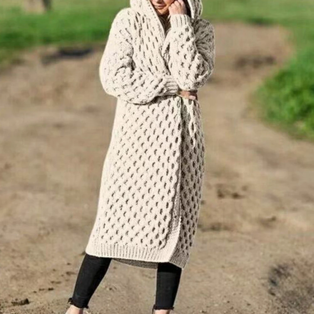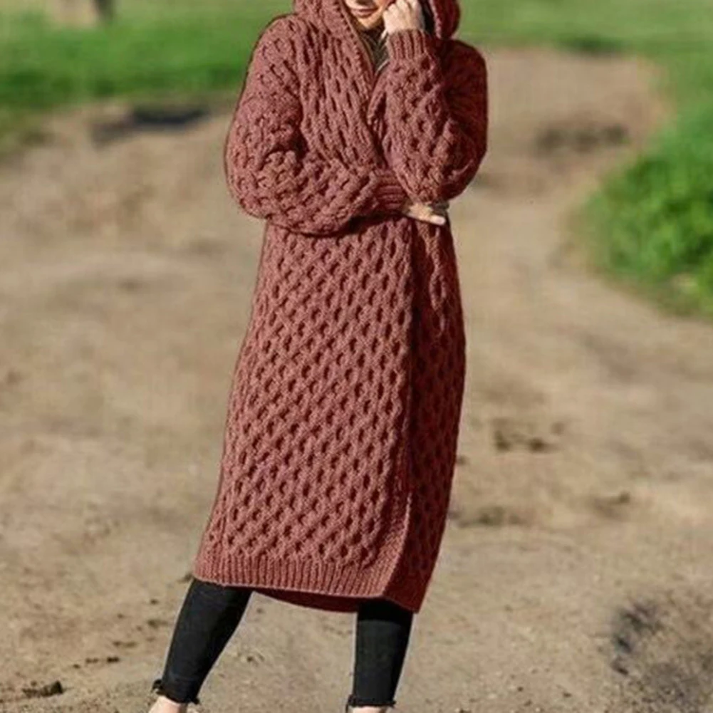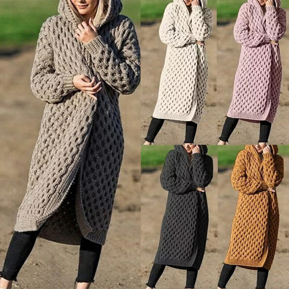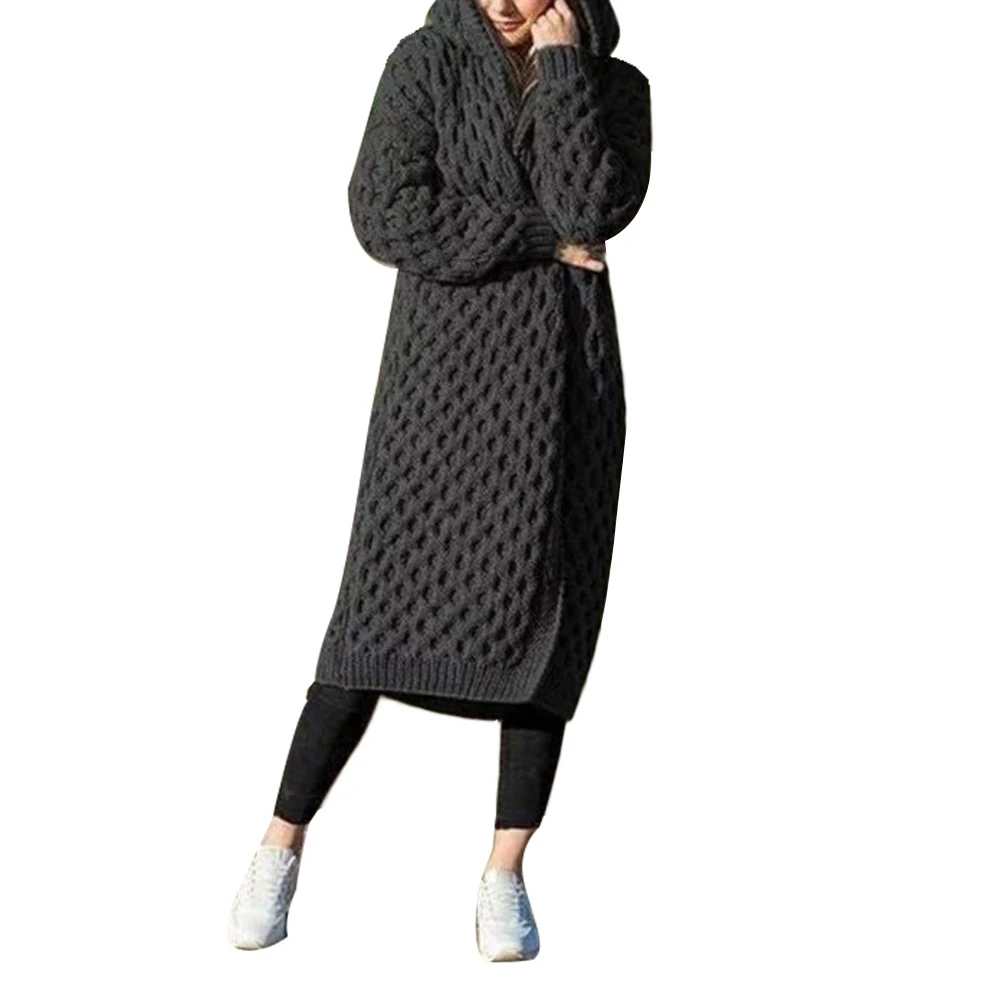 Plus Size Fashion Women's Hooded Thick Knitted Sweater Cardigan Coat Long Sleeve Winter Warm Hooded Cloak For Women's Clothing