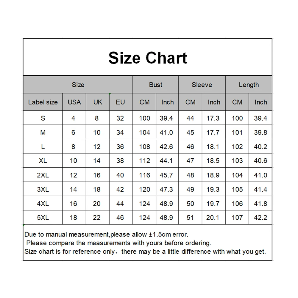 [Our Size 5XL] Bust: 124cm/48.82", Length: 107cm/42.13", Sleeve: 51cm/20.08" (Approx.)