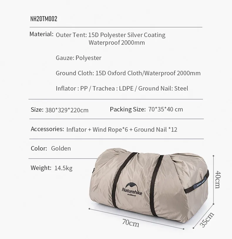 Материалы: наружная палатка: 15D полиэстер серебряное покрытие/Водонепроницаемость 2000 мм