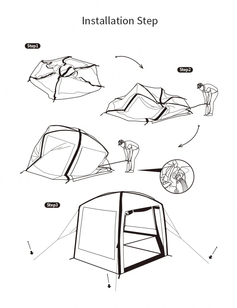 Аксессуары: насос + ветровая веревка * 6 + молотый гвоздь * 12