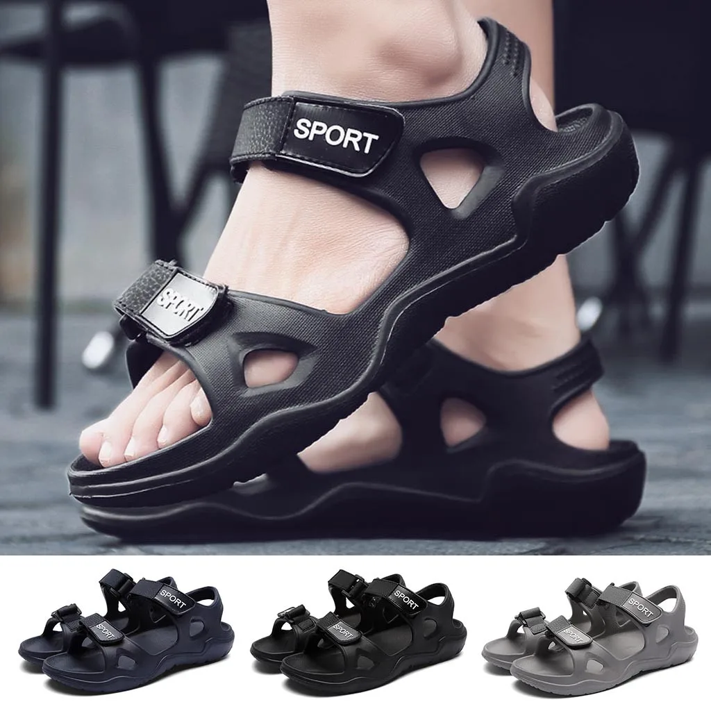 Мужские Пляжные шлепанцы; Однотонные Повседневные Дышащие квартиры сандалии с вырезами на крючках