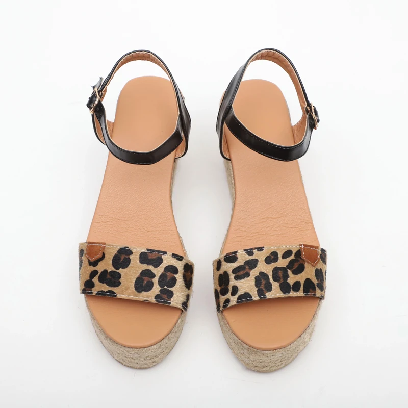 Удобные женские босоножки на танкетке; Летние сандалии-гладиаторы с леопардовым принтом; Сандалии на платформе с застежкой на ремешке; Повседневные римские сандалии с открытым носком; Feminina