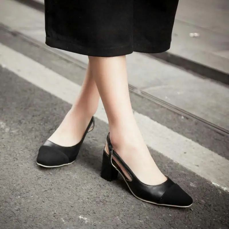 2020 Летние босоножки на высоком каблуке женские Baotou толстые женские сандалии на каблуках черный абрикосовый ремешок каблуки роскошные дизайнерские туфли-лодочки в стиле «кэжуал» сандалии