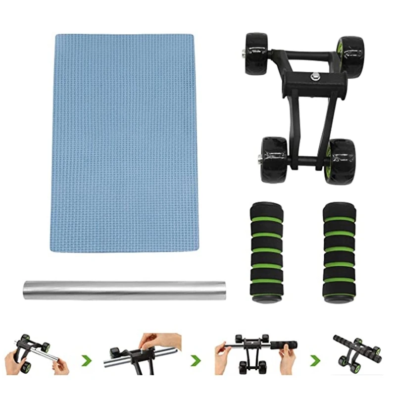 Тренажер для живота с мягким ковриком для колена, 4 колеса-брюшный ролик для фитнеса с мягкими противоскользящими ручками с упражнениями