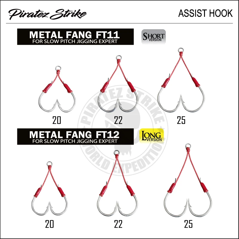 Piratez Metal Fang twin assist hook set are produced for slow pitch jigging. The difference between these as compared to the usual slow pitch assist set is that they are built much tougher and stronger.