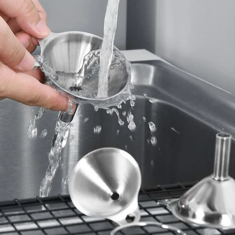 3 шт нержавеющая сталь Воронка: Изделие изготовлено из пищевого нержавеющая сталь, он безопасен для здоровья и не вредит экологии, устойчив к коррозии и не легко ржавчины.