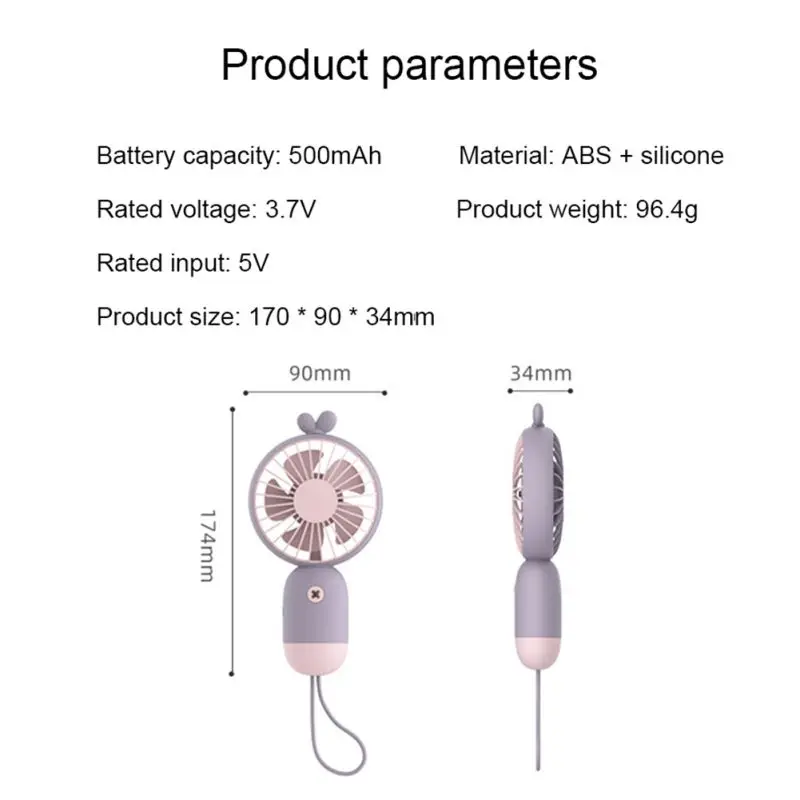 2. Размер продукта: 17,0x9,0x3,4 см/6,7 "x 3,54" x 1,3 ", маленький ручной вентилятор не займет много места, вы можете взять его в любом месте.