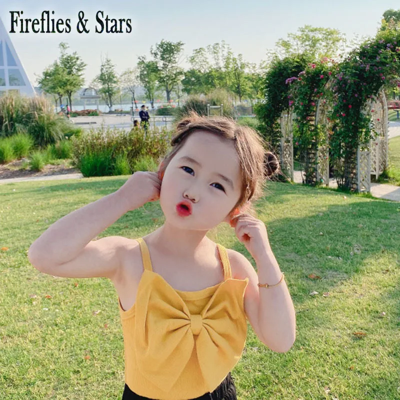 Название:Летний жилет для девочек Детская футболка на бретелях, топы без рукавов для детей, детская трикотажная верхняя одежда, модная одежда спереди, с большим бантом, на возраст от 2 до 8 лет