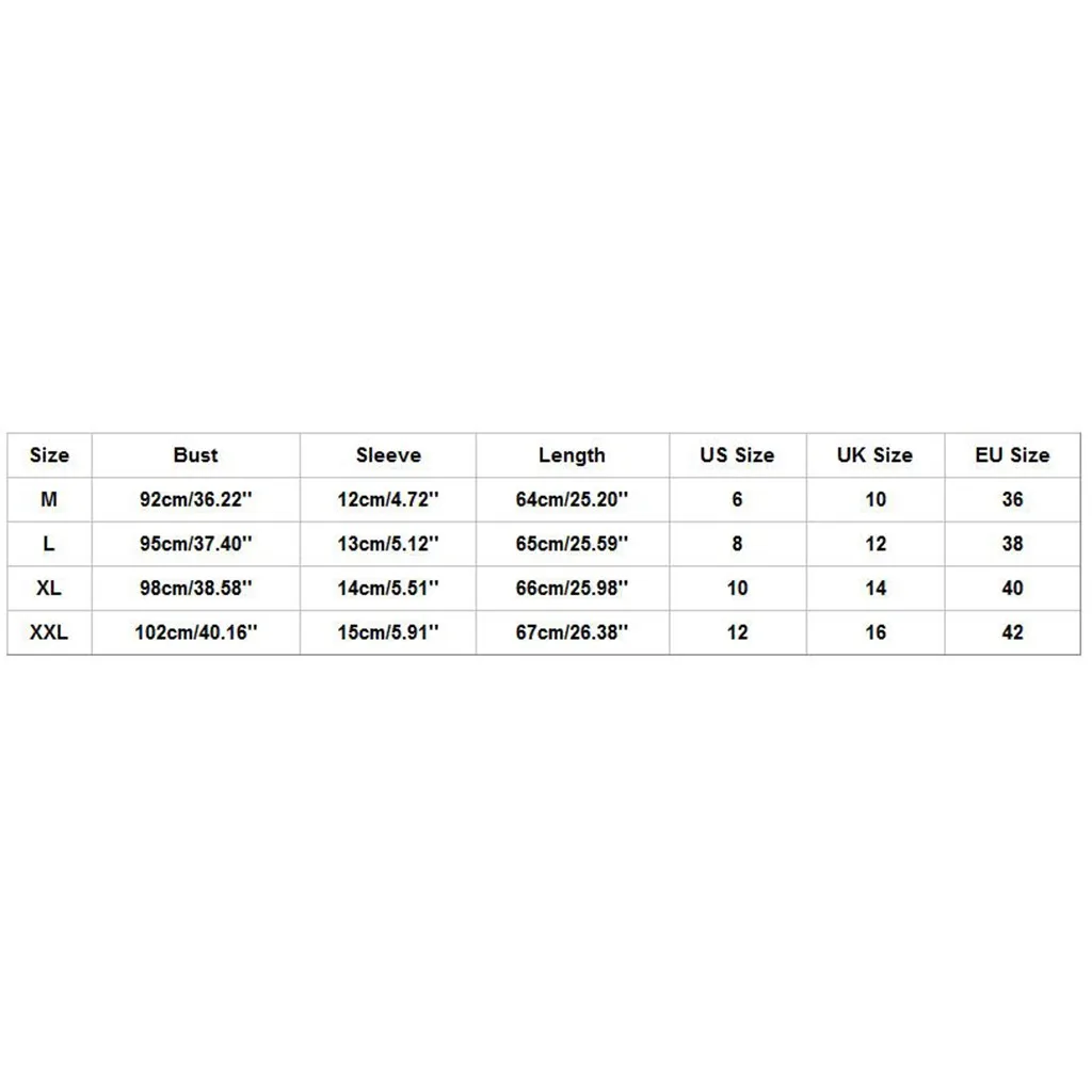 | Размер: XXL | Обхват груди: 102 см/40,16 дюйма | Рукав: 15 см/5,91 дюйма | Длина: 67 см/26,38'' | Размер США: 12 | Размер Великобритании: 16 | Европейский размер: 42 |