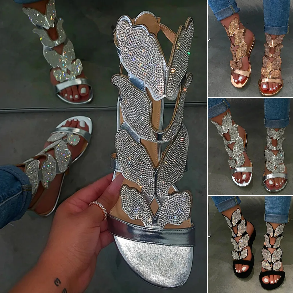 Женские модные повседневные сандалии со стразами и открытым носком; Стразы; Обувь на низком каблуке