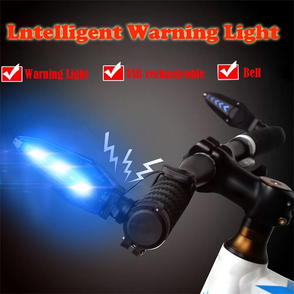 USB Rechargeable Cycling Bicycle MTB Handlebar Grip Bar End With LED Light Warning Lamp With Bell