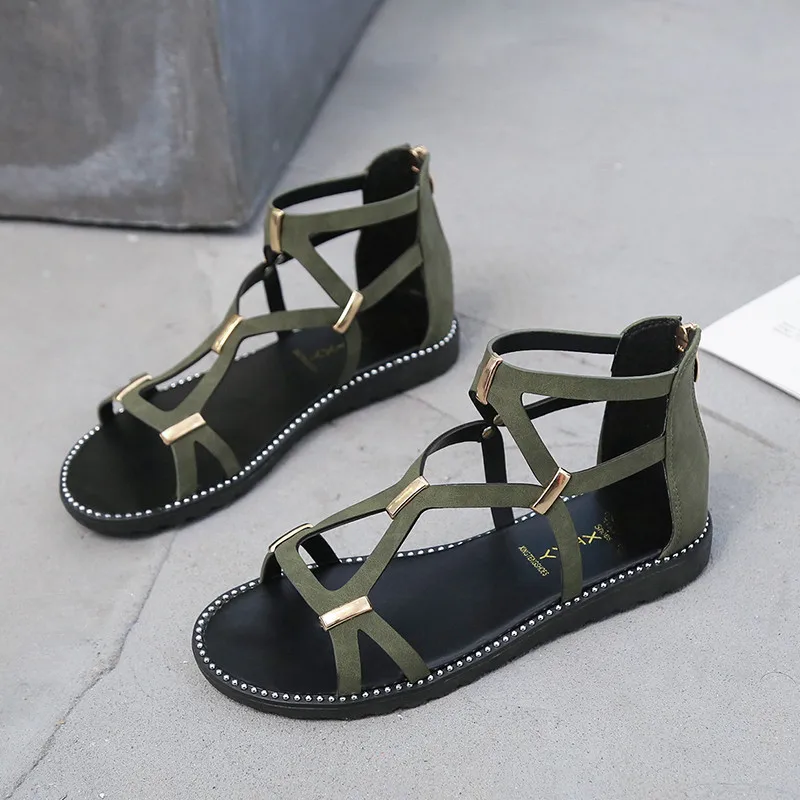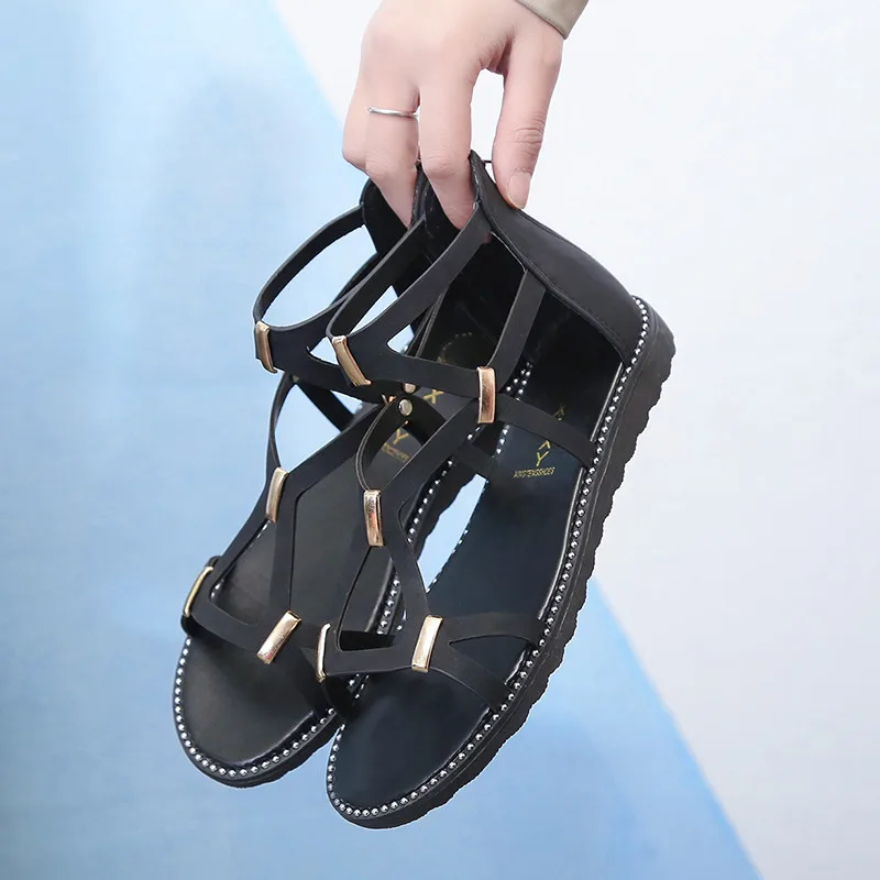 Новинка; Женская обувь в римском стиле; Женские сандалии на плоской подошве с молнией сзади