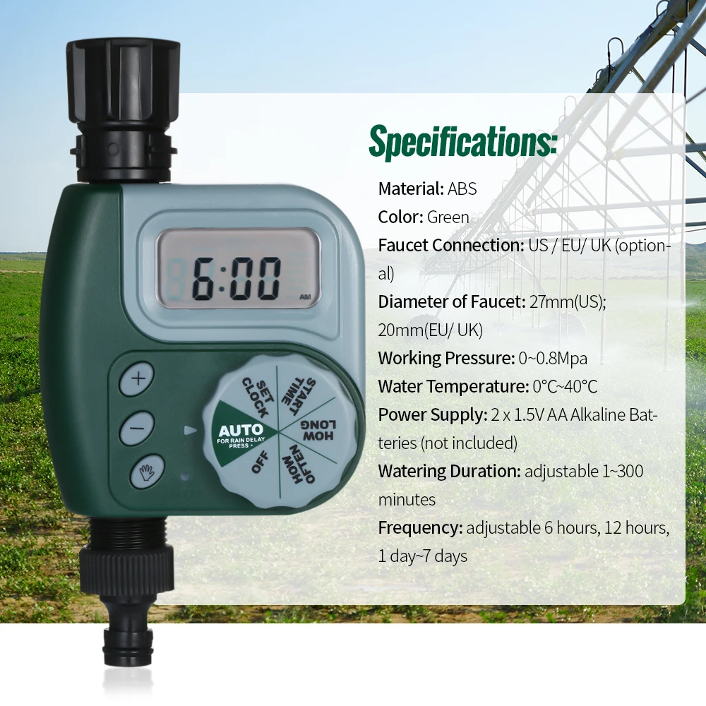 Подключите контроллер с помощью водяного шланга и установите, как часто и как долго вода, действительно усилий и экономии времени в садовом управлении.