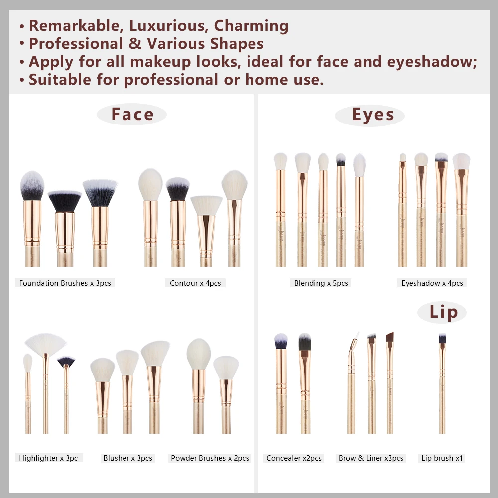 Тонкая кисть для теней JE01 Материал кисти: Jessupro(TM) волокон Кисть Общая длина: 15,7 см Маленькая кисть для растушевки с, без каблука, фирма наконечник для точного нанесения тени для век и тональный крем там, где вы хотите его! Средний тени для век JE02 Материал кисти: Jessupro(TM) волокон Кисть Общая длина: 14,5 см С средних размеров, универсальная щетка подбирает нужное количество цветов, чтобы пробираться через нижнюю крышку, идеальный размер для тени для век. Небольшой блендер JE03 Материал кисти: Синтетический Кисть Общая длина: 16,8 см Для прозрачного применения и смешивания теней для глаз, особенно в контур глаз. Кисть для консилера JE04 Материал кисти: Синтетический Кисть Общая длина: 17,3 см Волосы очень крепкий и плотный, подобрать более тональный крем, подходит для пасты. Круглые тени для век JE05 Материал кисти: Jessupro(TM) волокон Кисть Общая длина: 17,2 см Кисть используется для жидкого тонального крема, круглая щетка с куполом совет. Идеально подходит для нанесения и растушевки в складке зоны глаз. Мягкая кисть для растушевки JE06 Материал кисти: Jessupro(TM) волокон Кисть Общая длина: 17,6 см Округлая форма идеально соответствует кожи вокруг глаз. Гибкая щетина веером широко для того, чтобы облегчить затенение веко складки. Тени для век JE07 Материал кисти: Синтетический Кисть Общая длина: 16,6 см Идеально подходит для разработанным предотвращением пачкания отпечатками вкладышами или нанесения тени вдоль верхней и нижней линии ресниц для создания дымчатого образа. Затенение и blennding с дымчатого эффекта. Кисть для растушевки JE08 Материал кисти: Jessupro(TM) волокон Кисть Общая длина: 16,3 см Коническим наконечником позволяет более контролируемое нанесение и растушевка порошковых средств. Обеспечивает чистый цвет эффект потертости на глаз. Большой тени для век JE09 Материал кисти: Jessupro(TM) волокон Кисть Общая длина: 15,4 см Идеально подходит для нанесения стирки цвет ко всему веку. Очень мягкие синтетические biber волос идеально подходит для нанесения прозрачный цвет. Маленькие тени для век JE10 Материал кисти: Jessupro(TM) волокон Кисть Общая длина: 17,4 см Подать заявку на смесь крем румяна или средство, макияж для лица, бронзер на кожу. Используйте с жидких или кремообразных товаров. Легкая вкладыш JE11 Материал кисти: нейлон Кисть Общая длина: 15,7 см Прекрасный наконечником из синтетического волокна кисти, которая обеспечивает точное и прочное, даже ход, с помощью которых можно линия глаз. Применение с жидких или кремообразных товаров. Бровей вкладыш JE12 Материал кисти: Синтетический Кисть Общая длина: 16,6 см Наносите крем, жидкости или порошка продукцию непосредственно к линии ресниц для достижения наилучших результатов. Угловой лайнера JE13 Материал кисти: нейлон Кисть Общая длина: 15,7 см Этот скошенная кисть идеально подходит для Подкладка и определения ангельские глазки с точностью и управления, нанесения подводки в различных формах. Дуо-волокон JF01 Материал кисти: из Дуо-волокон Кисть Общая длина: 16,5 см Применение для создания мягкого слоя или добавить текстуры. Большая кисть для нанесения пудры JF02 Материал кисти: Jessupro(TM) волокон Кисть Общая длина: 18,1 см Этот набор кистей, в частности, с мягкой средство, макияж для лица, бронзер и нанесения пудры с мягкой волокон, которые представляют собой полный, округлой формы. Большой Румяна JF03 Материал кисти: Jessupro(TM) волокон Кисть Общая длина: 16,6
