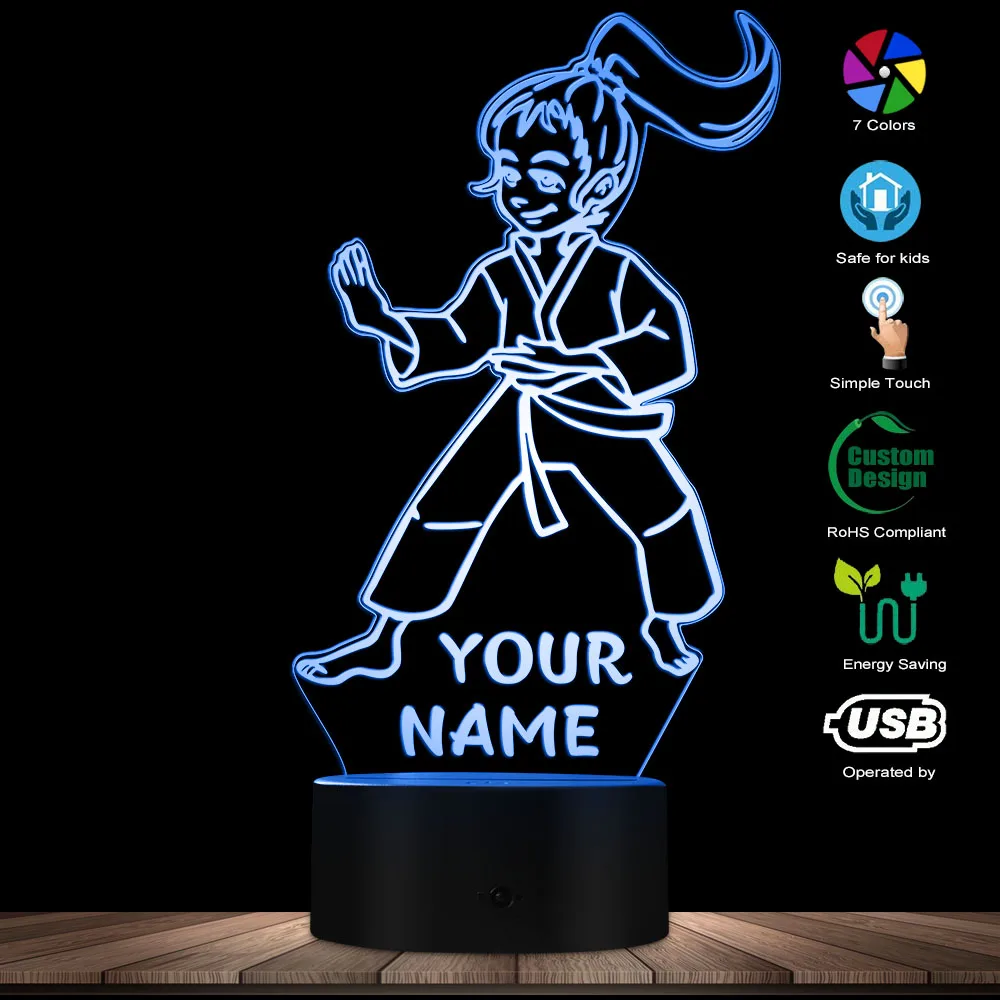 Пользовательские девушки каратэ 3D Визуальный светильник