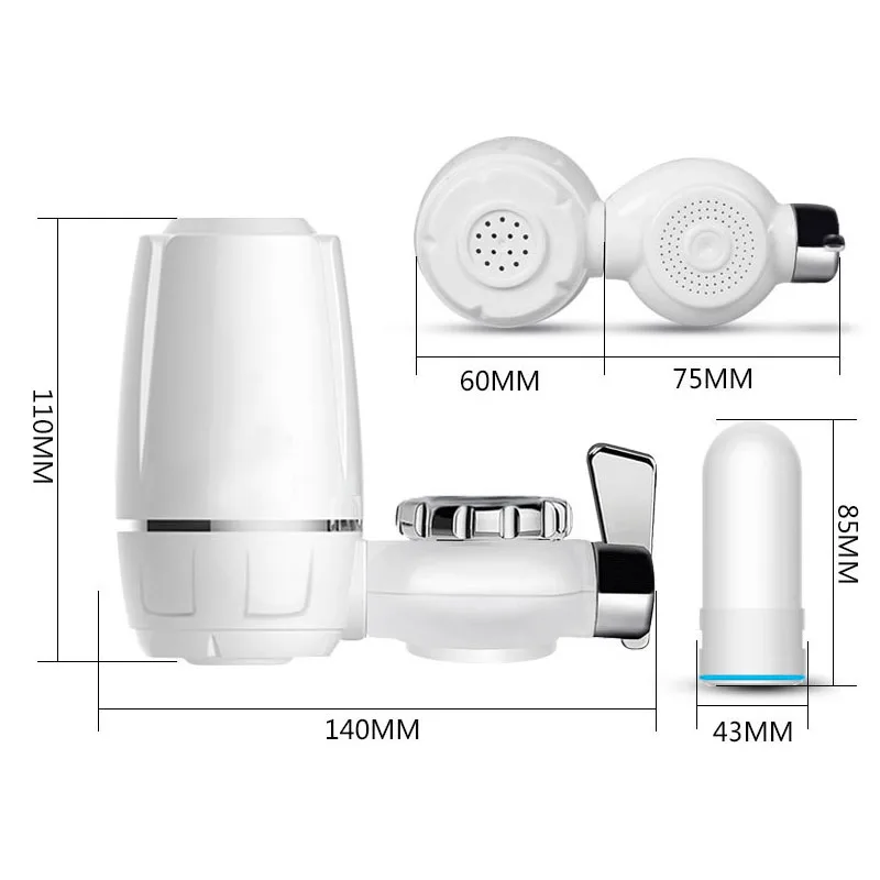 Особенности: 1. Есть 7 уровней фильтрации: глубокоморская диатомическая керамика, сульфит кальция, активированный уголь из кокосовой оболочки, минерализованные шарики майфанита, турмалин, хлопок ПП, основной фильтр 2. Очистка на семь уровней, удаление остаточного фтора, фильтрация осадочных минералов, здоровая питьевая вода, безопасность и надежность. 3. Фильтрующий элемент можно разобрать и стирать и использовать несколько раз. Его можно стирать каждые 7-10 дней, срок службы 3-6 месяцев. 4. Двойной режим горячей и холодной воды, два режима качества воды, очистка воды, необработанная вода, быстрое переключение. 5. Простая установка, оснащена 7 переходниками для крана, подходит для большинства смесителей.