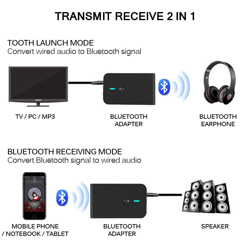 Включите ваш телевизор/ПК для потоковой передачи аудио к вашим Bluetooth headphoens или Bluetooth динамикам.
