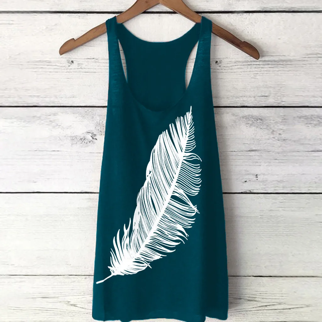 Женский летний длинный жилет с принтом перьев, модный Дамский Топ, l-образный жилет Характеристика: